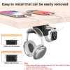 HORUMP Headphone Stand with 5 Port USB Charger, Under Desk Headset Hook Holder Hanger Mount with USB Charging Station and iWatch Stand Smart Watch Charging Dock Dual Earphone Hanger Hook